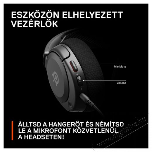 A vezérlők közvetlenül a SteelSeries headset fülkagylóján találhatókA szükséges kezelőszervek kezed ügyében vannak. A SteelSeries Arctis Nova 1 fejhallgató hangerejét egy gombnyomással könnyedén beállíthatod, és szükség esetén elnémíthatod a mikrofont.