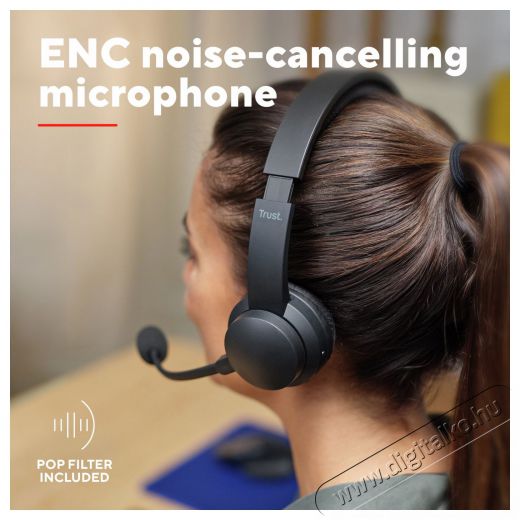 • Ez a meglévő TRUST vezeték nélküli fül-/fejhallgató összecsukható mikrofonnal bír