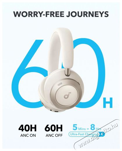 Az Anker Soundcore Space One Pro vezeték nélküli fejhallgató hosszú akkumulátor-üzemidőt garantál - aktív zajszűréssel akár 40 óra, anélkül 60 óra hallgatási időt. Ráadásul a gyorstöltés funkcióval további 8 órányi lejátszást biztosít mindössze 5 perc töltés után. Ez a funkció ideális a mindennapi használathoz és váratlan helyzetekben.