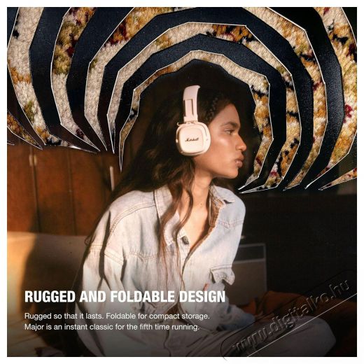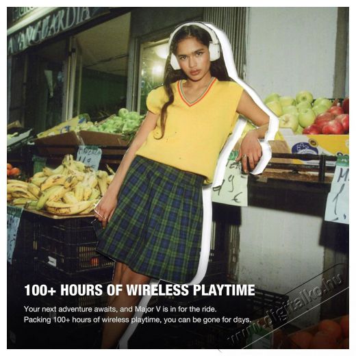 Marshall Major V - egy örök ikonA Marshall Major V Cream fejhallgató nemcsak a jól ismert karakteres hangzást és ikonikus dizájnt hozza, hanem számos innovációval is fel van vértezve. Több mint 100 órányi zenehallgatást kínál egyetlen töltéssel, masszív összecsukható kialakítása pedig ideális választássá teszi utazáshoz is. Az egyedileg programozható M gombbal személyre szabhatod a vezérlést, míg a beépített akkumulátorvédelem csökkenti az akkumulátor öregedését, így a fejhallgató hosszabb élettartamot biztosít. A fenntarthatóság jegyében a Marshall Major V 86%-ban újrahasznosított műanyagból készült – ez a stílus és a felelősség tökéletes egyensúlya.