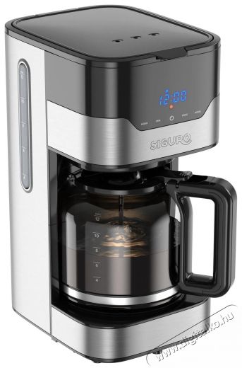 Siguro CM-G65 Coffee Time filteres kávéfőzőSzereted a filteres kávét és ugyanakkor a kényelmet? Bemutatjuk a Siguro CM-G65 Coffee Time készüléket, amely praktikus időzítővel van ellátva, így kényelmesen beállíthatod a pontos időpontot, amikor a gép elkezdi elkészíteni a kedvenc kávédat. Ráadásul a kávéfőző Anti-Drip rendszerrel, áttekinthető kijelzővel és a kávé erősségének beállítási lehetőségével van felszerelve. Prémium kategóriás matt rozsdamentes acél megjelenésével a Siguro CM-G65 Coffee Time minden modern belső tér tökéletes kiegészítője lesz.