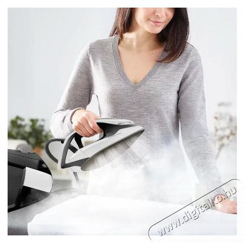 Gőzállomás - függőleges gőzölés, kábeles, 2800 W teljesítmény, gőzkibocsátás 130 g/perc, gőzlövet 600 g/perc, gőznyomás 8 bar, vasalótalp anyaga durilium, kivehető víztartály, gyorsmelegítés és függőleges gőzölés, ECO mód, vízkő gyűjtő a csomag része, tartály űrtartalma 1800 ml, kábel hosszúsága 1,6 m, fehér és fekete kivitel.