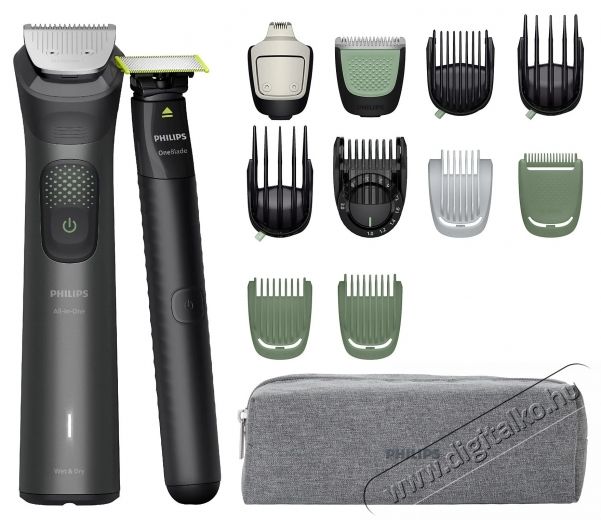 A Philips Series 9000 All-in-One Trimmer 15 az 1-ben kialakítása, rozsdamentes acél vágófejének precizitása és a OneBlade készülék bőrbarát technológia együtt biztosítja a teljeskörű ápolást az arcon, a hajon és a testen egyaránt. Legyen szó pontos kontúrok kialakításáról, hajvágásról vagy kényelmes testszőrtelenítésről, ez a készlet minden helyzetre megoldást kínál.