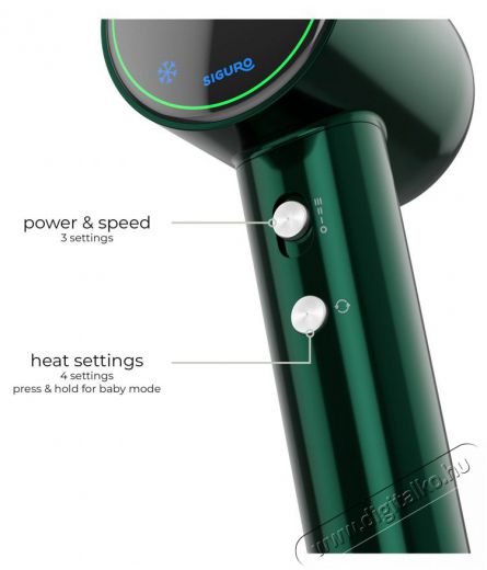 Ha kisgyermeked van, biztosan értékelni fogod a Baby Care módot, amely nagyon gyenge légáramlást biztosít, így biztonságosan szárítja a gyermekek finom haját. Ebben az üzemmódban nem állítható sem a sebesség, sem a hőmérséklet. A hajszárító memóriachippel is rendelkezik, így újraindításkor automatikusan azon a hőmérsékleten indul, amelyen legutóbb kikapcsoltad. A Siguro HR-I450W Forest Flow negatív iongenerátort kínál. A negatív ionok a szárítás során behatolnak a hajba, semlegesítik a pozitív töltést, csökkentik a statikus elektromosság felhalmozódását és megakadályozzák a haj göndörödését.