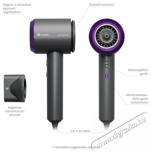 A TrueLife D3 HairDryer hajszárító legfontosabb jellemzői: