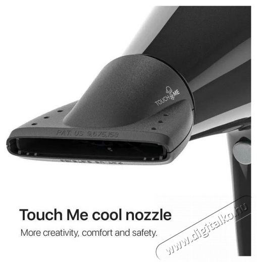 A csomag két keskeny formázóhegyet tartalmaz, köztük a TOUCH ME változatot, amely még hosszabb használat során is hűvös marad. A diffúzor a volumenért felel, a kivehető fémszűrő pedig a könnyű karbantartásról és a hosszabb élettartamról gondoskodik.
