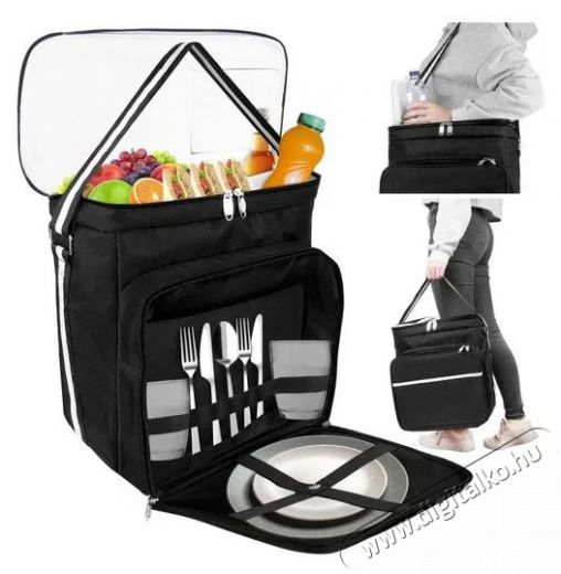 A fekete termál pikniktáska melegen tartja az ételed és italod, így tökéletes választás a tengerparti kirándulásokhoz, hegyi túrákhoz vagy piknikekhez. Speciálisan kialakított tányérok, evőeszközök és poharak szállítására. A táska vízálló, ezért kedvezőtlen időjárási körülmények között is használható, mint eső vagy hó.