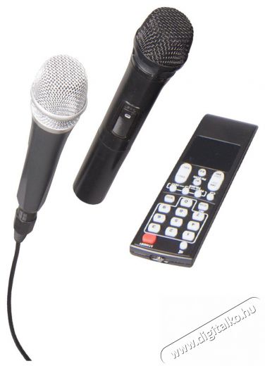 Amellett a hangszóró csomaghoz tartozik távirányító, vezetékes és vezeték nélküli mikrofon kábel csatlakozó, külső FM antenna, hálózati adapter és kezelési útmutató.