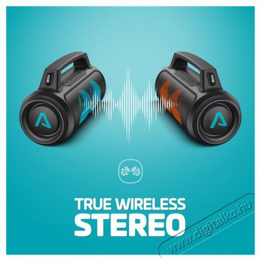 Hangszórónk kicsinek tűnhet, de hatalmas 50 W-os teljesítményt nyújt, amely tökéletes minden buli feltöltéséhez. Több teljesítményre van szüksége? Egyszerűen csatlakoztasson egy másik PartyGo1 Play készüléket a TWS (True Wireless Stereo) funkcióval a teljesítmény megduplázásához.