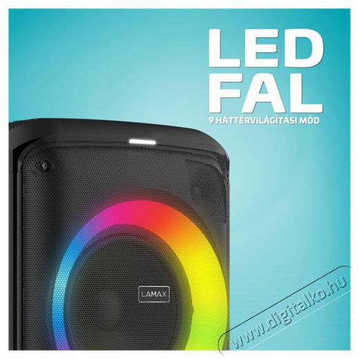 LAMAX PartyKing1 Play Bluetooth hangszóróEgy hangszóró, amely beindítja a bulitNagyszerű zenei hangzásra vágysz alkalmi zenehallgatáshoz, rendezvényekhez vagy filmnézéshez? A LAMAX PartyKing1 Play hangszóróval mindez elérhető, és ennél még sokkal több is! Ha még jobb hangzást szeretnél, használhatod a TWS (True Wireless Stereo) funkciótegy második hangszóró csatlakoztatásához, akár kétszeres teljesítményhez. A gazdag csatlakozókínálat és több fájlformátum támogatása a lehetőségek széles körét elérhetővé teszi. Ha szükséged van rá, a LAMAX PartyKing1 Play hangszórót egy FM tunerrel is felszerelték. A készülék nemcsak a hangjával, hanem vizuális effektekkel is hozzájárul a tökéletes hangulathoz. A Bluetooth hangszóró összesen 9-et kínál ezekből. A kényelmes és stabil csatlakozást a Bluetooth 5.3 technológia teszi lehetővé. A LAMAX PartyKing1 Play beépített akkumulátorral rendelkezik akár 13 óra üzemidővel, és USB-C-n keresztül újratölthető. A praktikus fogantyú megkönnyíti a Bluetooth hangszóró szállítását.