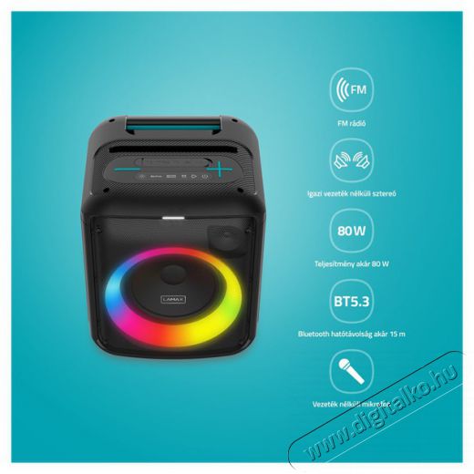 A LAMAX PartyKing1 Play Bluetooth hangszóró legfontosabb jellemzői- Könnyen hordozható, akár 80 W teljesítményű hangszóró