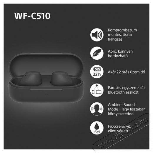 - A Sony True Wireless WF-C510 6 mm-es neodímium hangszórókkal rendelkezik