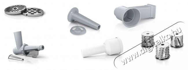Hozzátartozó kiegészítők Kolbász töltő tartozék Gyümölcs- és zöldségcentrifuga Paradicsomlékészítő tartozék Aprító tartozék Szeletelő tartozék