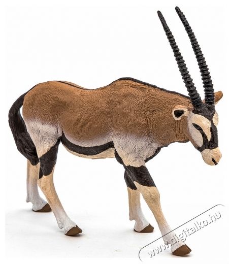Papo Figurine - Vadon élő állatok, Oryx AntilopLátogassa meg a fenséges fehérfarkú szarvast az erdők szívében, fedezze fel a szavannát a hatalmas szumátrai tigrissel, vagy másszon fel a hófödte csúcsokra, hogy megkeresse a hópárducot. Az oryx gazella, más néven oryx antilop, egy növényevő kérődző, amely főként Namíbia sivatagi dűnéiben vagy a Kalahári száraz szavannáin található. Az oldalán található nagy fekete vonalak, valamint a lábak és a fej különösen jól felismerhetővé teszik. Ragadozó támadás esetén az oryx antilop 90 km/h végsebességgel képes elmenekülni!