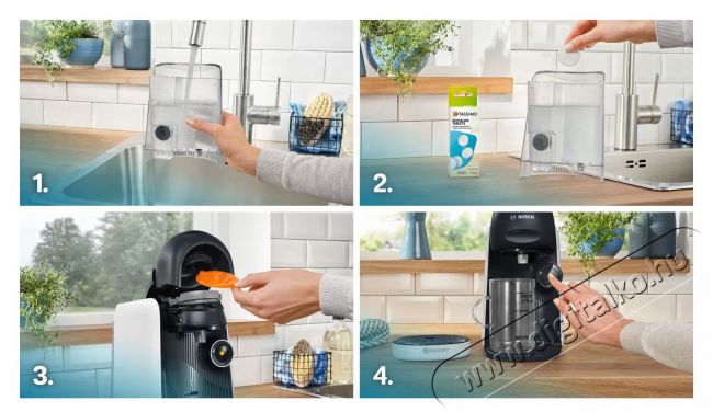 A minden igényt kielégítő Bosch kapszulás kávéfőzőgép karbantartása kicsit sem bonyolult. Az automatikus tisztítási folyamat hozzájárul a kényelmes használathoz. A gép bekapcsolásakor aktiválódik az automatikus öblítés, amely következetesen megtisztítja a készüléket a kávémaradékoktól. A gép kikapcsolásakor a belső kör többször átmosásra kerül, hogy eltávolítsa a kávélerakódást. Ha a kapszulás kávéfőzőnek alapos tisztításra vagy vízkőmentesítésre van szüksége, időben jelzi Neked. A kalcium- és magnéziumlerakódások kedvezőtlenül befolyásolhatják a kávé ízét és aromáját és alacsonyabb a vízhőmérsékletet eredményezhetnek.