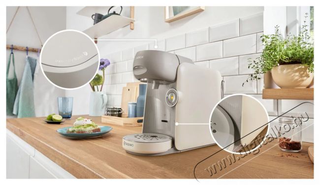 BOSCH TAS167P Finesse FriendlyEme Bosch kapszulás kávéfőző kivételes minőségű kávét szolgáltat számodra, minden egyes nap. Kezelése rendkívül egyszerű, csak meg kell nyomni gombot és az ital máris kész. A legjobb kávékülönlegességeket tudja elkészíteni, a készülékkel főzött mennyei espresso és tejes kávéitalok zamata ellenállhatatlan lesz. Tassimo kapszulákkal kompatibilis.