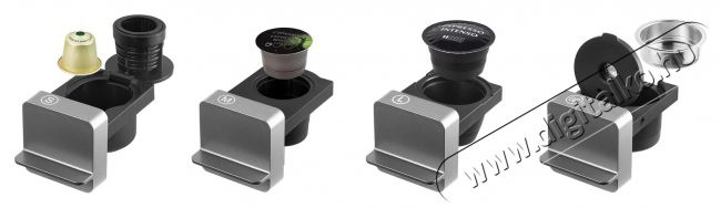 - 3 adapter kapszulákhoz (S - Nespresso, M - Caffissimo/Tchibo, L - Dolce Gusto) és 1 adapter őrölt kávéhoz