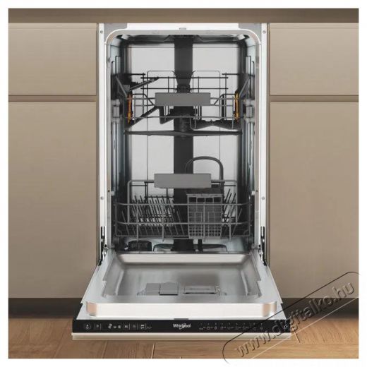 A keskeny (45 cm széles) WHIRLPOOL beépíthető mosogatógép ideális választás a kisebb háztartásokba. A beépíthető mosogatógép dizájnját összhangba hozhatod a konyha megjelenésével úgy, hogy a konyhabútor mintázatával megegyező ajtót szereltetsz rá.