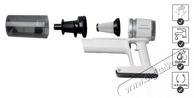 Mosható szűrőA Hisense HVC6134W álló porszívó mosható szűrővel rendelkezik. Rendszeres és megfelelő karbantartásával biztosíthatod, hogy a Hisense HVC6134W megfelelő erővel rendelkezzen ahhoz, hogy megszabadítsa otthonodat minden szennyeződéstől, beleértve a polleneket és a poratkákat is.