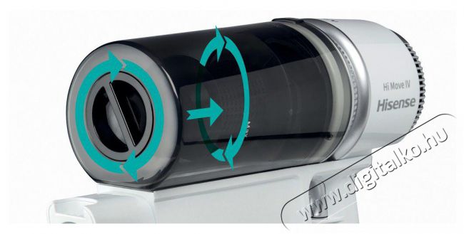QuickClean szűrőA legjobb tisztítási eredmény elérése érdekében a Hisense HVC6134W porszívó gyorstisztító szűrővel van ellátva. A szűrő tisztításához egyszerűen forgasd el a portartály hátulján lévő gombot.