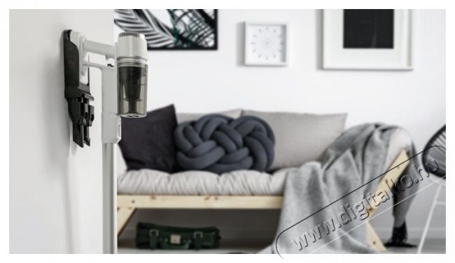 A Hisense HVC6134W könnyen tárolható a fali tartóbanAz álló porszívóhoz egy praktikus tartó is jár, amelyet a falhoz rögzíthetsz, és belehelyezheted a készüléket a tartozékokkal együtt. Így mindig kéznél lesz és használatra készen áll. Az ideális hely közel van a konnektorhoz, így a HisenseHVC6134W álló porszívót és azonnal feltöltheted.