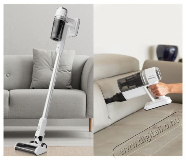 Kézi és álló porszívó a rugalmas használathozA porszívó gondoskodik a szükséges rugalmasságról az otthoni takarítás során. A HisenseHVC6134W álló porszívókiválóan alkalmas a padló felporszívózásra, de egy pillanat alatt kézi porszívóvá alakíthatod, és eltüntetheted a konyhapulton vagy a kanapén lévő szennyeződéseket. A HisenseHVC6134W álló porszívó mellé porkefe és réstisztító szívófej is jár. Kézi porszívó üzemmódban bátran kiporszívózhatod vele az autó belsejét. A 6 cellás Li-Ion akkumulátor akár 35 perces használatot biztosít.