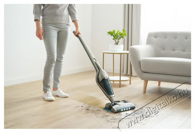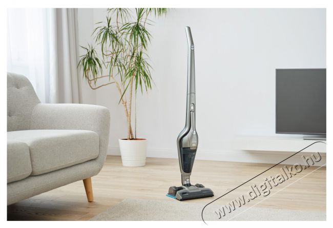 A kétféle teljesítményszintből kiválaszthatja a szükségeset. A nagy teljesítményű üzemmód kiváló az erősen szennyezett felületek intenzív tisztítására. Normál takarítás üzemmódban a porszívó akár 40 percig is üzemel.