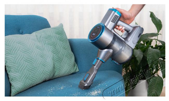A készülék lehetővé teszi, hogy három teljesítményszint közül válassz a tisztítandó felület típusa és a szennyeződés mértéke alapján. Az integrált 25,9V-os Li-Ion akkumulátor rendkívül hosszú élettartamú, és a legalacsonyabb teljesítményszinten akár 40 percig is működhet, míg a legmagasabb fokozaton a Siguro VT-K910B TURBOVac Star BLDC porszívó üzemideje 12 perc. Egy töltéssel kényelmesen kitakaríthatsz egy átlagos méretű otthont. Az akkumulátor teljes feltöltése körülbelül 3–3,5 órát vesz igénybe. Biztosan hasznosnak találod majd a praktikus kijelzőt, amely az aktuálisan választott üzemmódot és az akkumulátor kapacitását mutatja, valamint figyelmeztet, ha fel kell töltened a porszívót, ki kell ürítened a porgyűjtő tartályt, vagy ha a forgókefe elakadt.