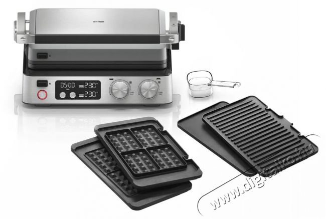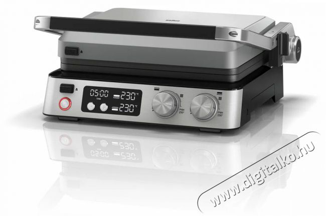 Braun CG7044 kontakt grillA Braun CG7044 kontakt grill segítségével grillezett specialitásokat, paninit és gofrit készíthetsz. 2 független termosztáttal van felszerelve, amelyek lehetővé teszik mindkét grill lemez hőmérsékletének beállítását, valamint beépített fűtőelemekkel a gyors felmelegedés érdekében. A hőmérséklet 230 °C-ig állítható. A grillsütő nagy grillező felületet kínál, amelyen egyszerre akár 12 hamburgert vagy más finomságot is grillezhetsz 6 személy számára. A Braun CG7044 három grillezési pozícióval - kontakt, nyitott és sütési - biztosítja a maximális sokoldalúságot. A grillsütő beépített csepegtető tálcát tartalmaz a felesleges zsiradék számára. A könnyű tárolás érdekében praktikus zárrendszerrel is ellátták. A Braun CG7044 kontakt grill minden alkalommal tökéletesen átsütött ételt készít.
