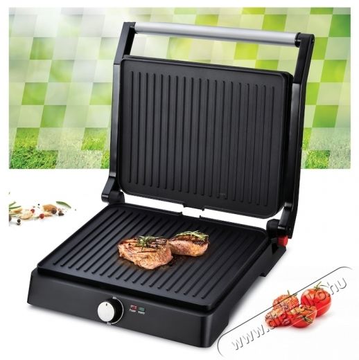 Heinner SunriseGrill HEPG-F2000BKSS Elektromos grill, Tapadásmentes, 180 nyitás, Állítható hőmérséklet, Fekete/Inox