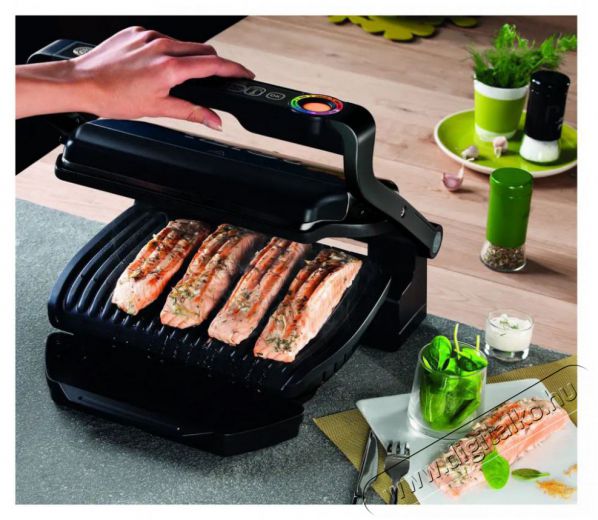 Ismerkedjen meg az OptiGrill+ Snacking & Baking eszközzel, az innovációnk legújabb eredményével kézi móddal és négy hőmérséklet szinttel a végtelen grillezési lehetőségekért. Kiegészítő tartozékokkal sós és édes ételek készítésére, melyek a kézi módnak és a négy állítható hőmérsékletnek köszönhetően lehetővé teszik a sütést, főzést/melegítést vagy lassú sütögetést. Mosogatógépben mosható, a berendezés hőszigetelt fogantyúval rendelkezik a kényelmes kezelésért. Az „Automatikus grillezés érzékelő" technológiának köszönhetően az OptiGrill+ azonnal azonosítja az adagok számát a grillezési felületen és leméri azok vastagságát, hogy automatikusan beállíthassa a megfelelő hőmérsékletet és grillezési időtartamot a tökéletes eredményekért. A jelzőfénynek és hangjelzésnek köszönhetően közvetlenül megfigyelheti az étel készítését a teljesen precíz grillezés és húskészítés érdekében saját ízlése szerint: véres, közepesen átsütött vagy jól átsütött. 6 program a mindig tökéletes ételkészítéshez: burger, baromfi, szendvics, kolbász, vöröshús és halak, ráadásul egy mód a fagyasztott élelmiszerekre és kézi mód négy hőmérséklet beállítással. További előny az öntött alumínium lemez tapadásmentes felülettel, 600 cm2 grillezési felület 2-4 személy részére, és egy nagy lecsöpögtető tálca 7°-os dőlésszöggel a lecsöpögő szaft összegyűjtésére.