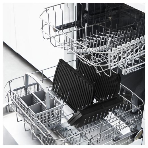 A grill lemezek tapadásmentes felülete könnyen lemosható, ráadásul a lecsöpögtető tálcával együtt kivehetők és mosogatógépben tisztíthatók.