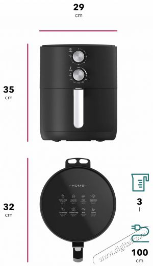 Készítsd el a rántott ételeket egészségesebbenA Home AF-C300 Air Fry forrólevegős sütővel ízletes fogásokat készíthetsz el minimális olajfelhasználással – gyorsan, egyszerűen és egészségesen. A készülék kivehető, tapadásmentes felületű, 3 literes sütőkosárral rendelkezik, manuális vezérlése könnyen kezelhető, a 360° Hot Air Flow technológia pedig egyenletes forró levegő áramlást biztosít. A forrólevegős sütőben könnyedén elkészítheted a ropogós hasábburgonyát, csirkeszárnyakat, steaket, tenger gyümölcseit, halat és még sok mást is. Elegáns, matt felületének köszönhetően pedig tökéletesen illik minden modern konyhába.