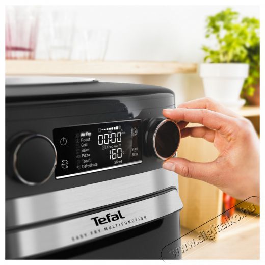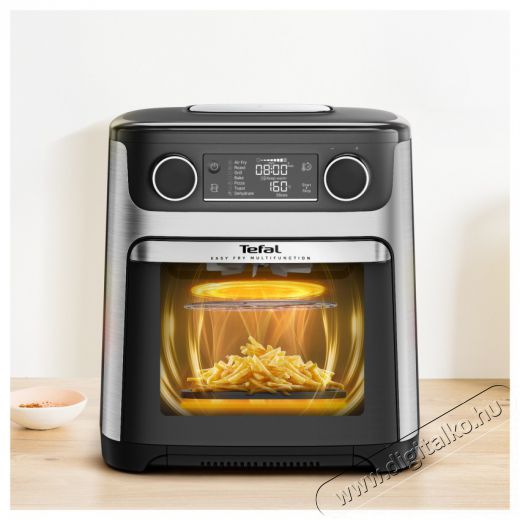 A sokoldalú Tefal Easy Fry multifunkciós légkeveréses fritőz nagy, 15 literes kapacitású a komplett családi menü elkészítéséhez egy lépésben. Az exkluzív kettős fűtőrendszerrel és Extra Crisp technológiával, a 9 automatikus sütési funkcióval gyorsan, ízletes, egészséges ételt főzhet. Süssön burgonyát vagy egész csirkét nyárson, készítsen pizzát, süssön pitét, aszaljon gyümölcsöt és sok mást, mindezt kevesebb idő alatt és kevesebb energiával!