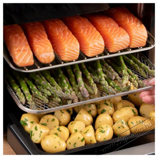 A 3 különböző rácsszintnek és az egyenletes sütésének köszönhetően egyszerre több ételt is elkészíthet — egy komplett családi étkezéshez.