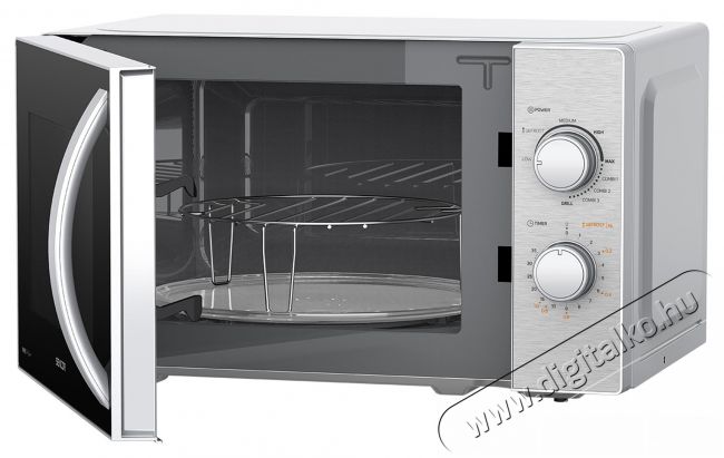 Számos ételt élvezhet anélkül, hogy be kellene kapcsolnia a sütőt vagy a tűzhelyet. Természetesen tud ételt melegíteni. Az üzemmódokban megtalálható a mikrohullámú teljesítmény szabályozási lehetősége, de akár 1000 W teljesítményű grill üzemmód, kiolvasztás vagy három kombinált főzési mód is. Egyszerű felhasználói kezelést kínál két vezérlőgombbal. Ezekkel beállíthatja a melegítési időt 35 percre és a kívánt üzemmódot.