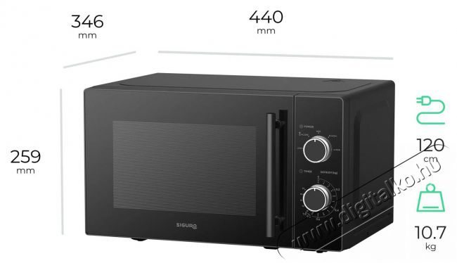 A Siguro MO-B130B Element egyszerű működésével és praktikus tulajdonságaival nyűgöz leA Siguro MO-B130B Element mikrohullámú sütő mindenekelőtt a két mechanikus forgótárcsával ellátott egyszerű kezelőszervekkel fogja elnyerni tetszésed - ezt a szabadon álló mikrohullámú sütőt bárki tudja kezelni, gyerekek és idősebb felhasználók egyaránt. Hangjelzés figyelmeztet, ha a melegítésnek vége, a stabil fogantyú pedig lehetővé teszi az ajtó könnyű nyitását.