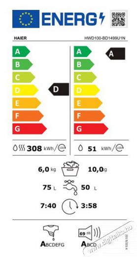 Energiahatékonysági osztály (mosás és szárítás) D