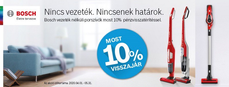 Szerezze be Bosch vezeték nélküli porszívóját most 10% pénzvisszatérítéssel!