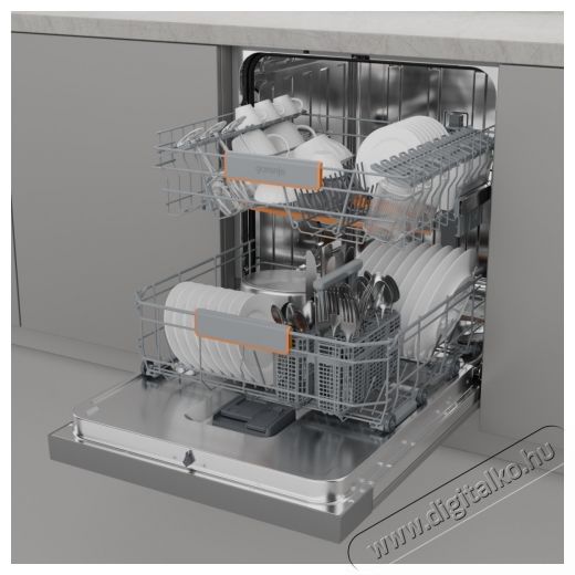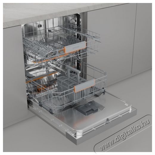 A kosarak az elmosogatandó edények magassága alapján egy bizonyos pozícióba állíthatók. A mosogatási program befejezését követően az ajtó automatikusan kinyílik, így az edények gyorsabban megszáradnak. Jól olvasható kijelző is a része, amely információt nyújt az összes programról.