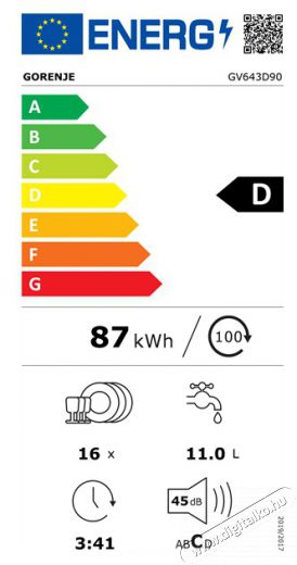 | Teljes név | Gorenje GV643D90 beépíthető mosogatógép |