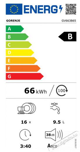 | Energiahatékonysági osztály (EU 2017/1369) | B |