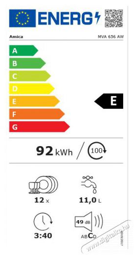 | Energiafogyasztás | 92 kWh/100 ciklus |