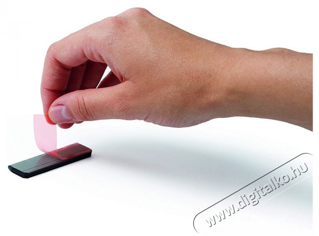 • Öntapadó hátlappal rögzíthető sima, kemény felületekre, pl. szekrények, hűtők, üveg ajtók