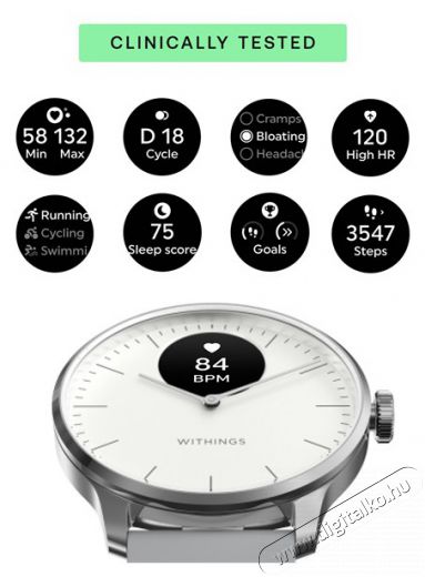 Withings ScanWatch Light White, 37 mm okosóra legfontosabb jellemzői- Elegáns hibrid unisex óra