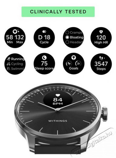 A Withings ScanWatch Light Black, 37 mm okosóra legfontosabb jellemzői- Elegáns hibrid unisex óra