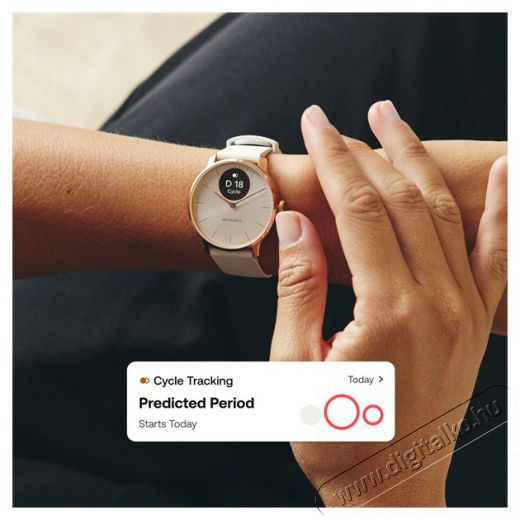 Praktikus női funkciókA Withings órával a nők nyomon követhetik menstruációs ciklusuk tüneteit, fázisait és hosszát, hogy jobban megértsék a ciklus egyedi mintáit. Ezután összehasonlíthatják és értékelhetik ciklusadataikat az alkalmazásban található egyéb értékekkel, hogy jobban következtetni tudjanak az általános egészségi állapotukra. Ezenkívül az összes adatot pdf formátumban exportálhatják és szükség esetén megoszthatják pl. az orvosukkal.