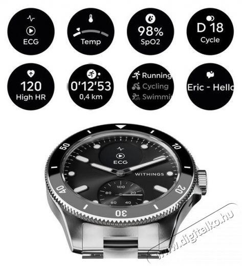 - A minőségi Withings smartwatch sportfunkciói: lépésszámláló, pulzusfrekvencia, tevékenység észlelése és kalóriaszámítás