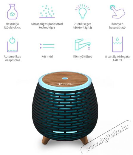 • A kiváló minőségű TrueLife ultrahangos aroma diffúzor néhány pillanat alatt kellemes és nyugodt légkört teremt