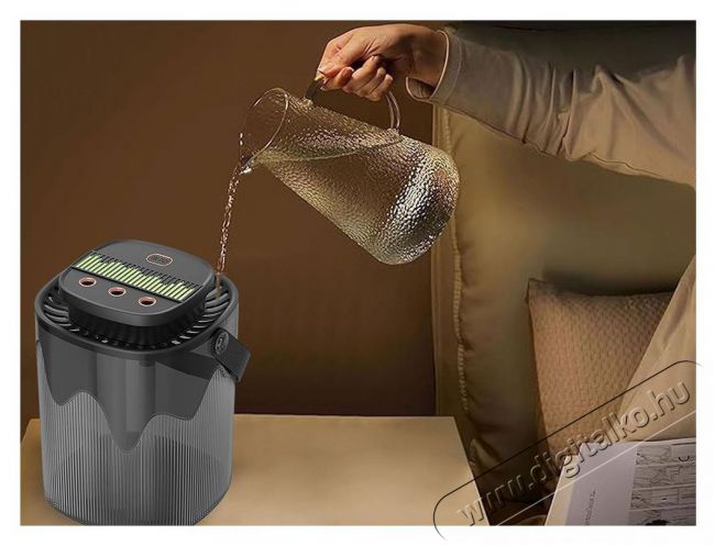 Gondoskodjon környezetének megfelelő levegő páratartalmáról a modern és praktikus 3000 ml-es párásítóval. Az 5 wattos teljesítményével és háromféle üzemmódjával (1, 2 vagy 3 sugár) a készülék minden helyzethez ideális - a nappaliban való pihenéstől az irodai munkán át a hálószoba levegőjének párásításáig. További bónusz a lágy, meleg fehér háttérvilágítás, amely kellemes hangulatot teremt a szobában. Ez a párásító kiemelkedik egyszerű használatával - a víz utántöltésének köszönhetően a fedél eltávolítása nélkül is rendkívül kényelmes a készülék használata. A beépített vízszintérzékelő gondoskodik a biztonságról, mivel alacsony vízszint esetén automatikusan kikapcsolja a készüléket, megvédve azt a károsodástól. Az elegáns kialakítás és a nagy kapacitás miatt ideális bármilyen belső térbe.